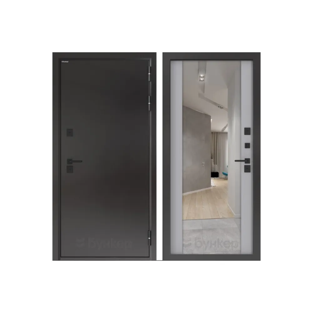 Входная дверь с терморазрывом BN-10 с зеркалом ФЛЗ-1 Лайт грей софт