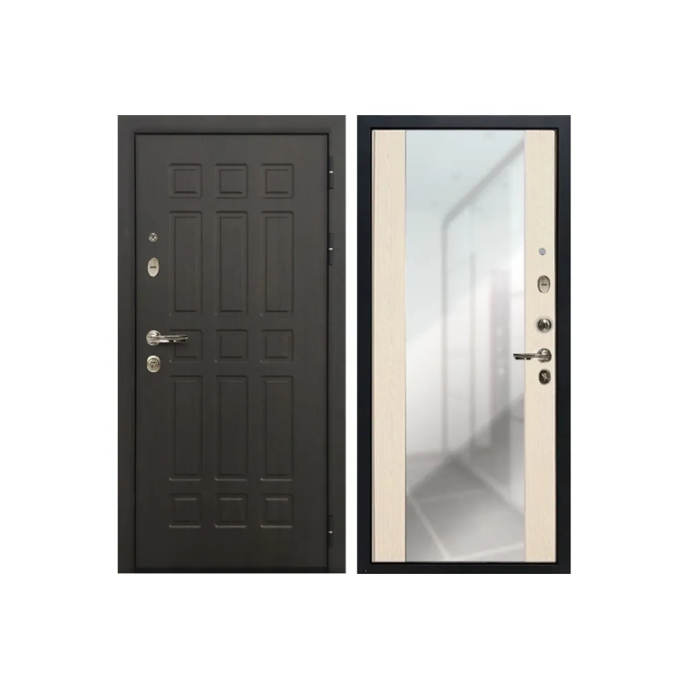 Входная металлическая дверь Лекс 8 Сенатор Стиль с зеркалом Дуб белёный (панель №45)